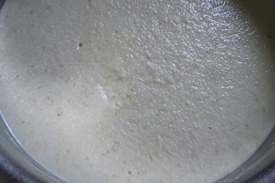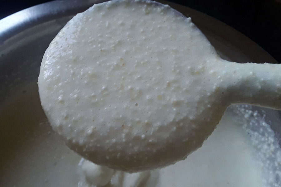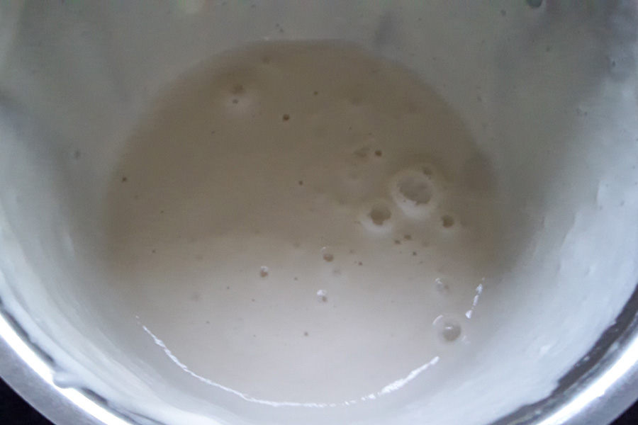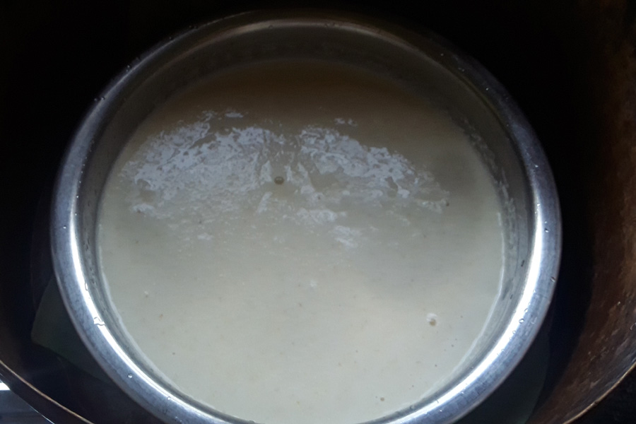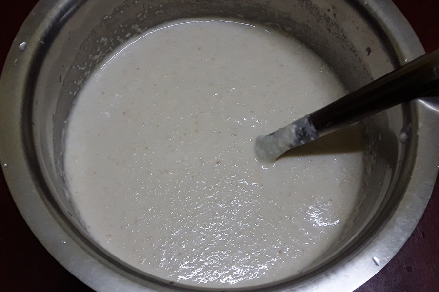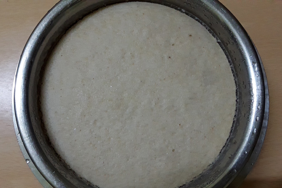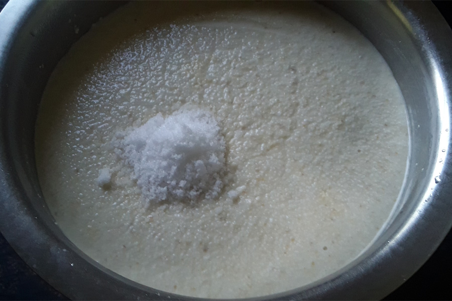 9. Mix very well with a spoon or spatula making sure that there are no lumps. Cover the batter and keep aside. Let it ferment for 8 to 9 hours.