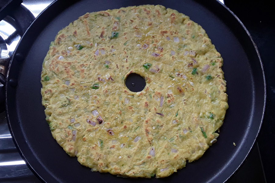 15. Turn over and continue to cook the other side of the taalipit until golden. Intermittently, press the edges with the spatula so that edges will also cook well.