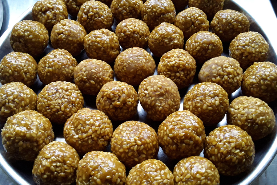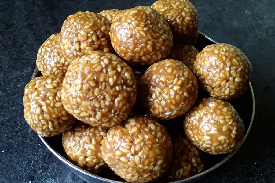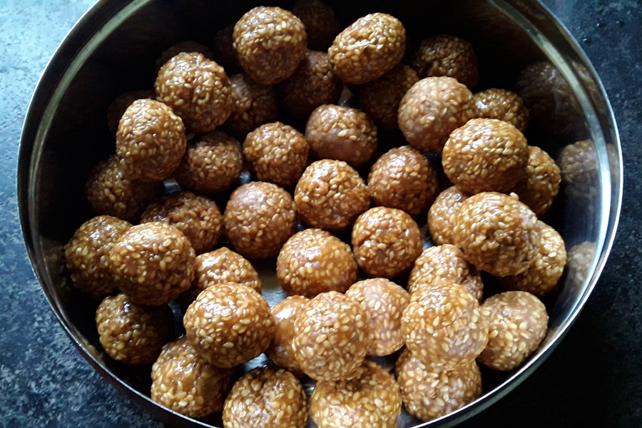 While making ellunde in more numbers, the last batch of the ellunde will be little dry due to reheating. As far as you like the sesame and jaggery combination, that is perfectly OK!