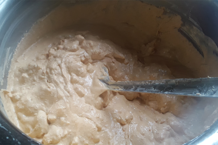 4. Take the ground batter in a thick vessel or pan.