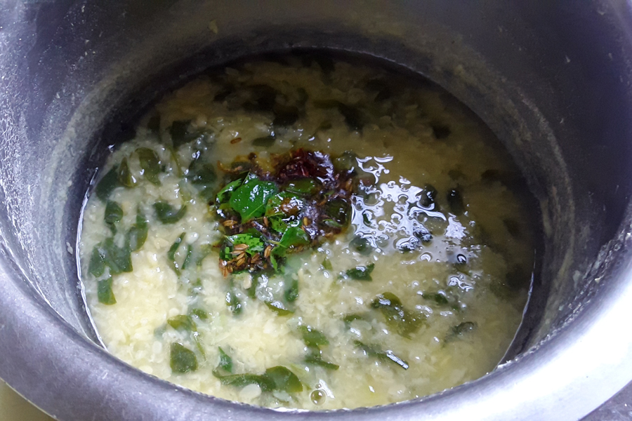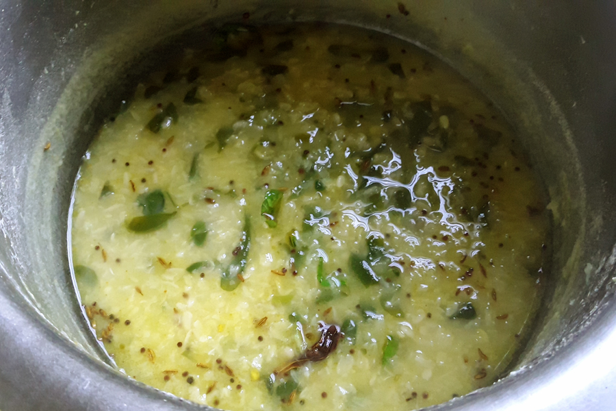 In this recipe, I have added fenugreek (mente / methi) leaves to tove. This makes the tove more flavourful. But adding fenugreek leaves is optional.