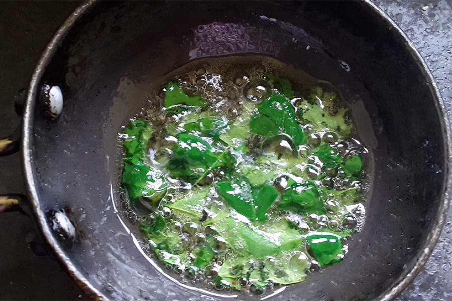 11. Fry them for a minute or till they become aromatic and crispy. Do not brown or burn them.