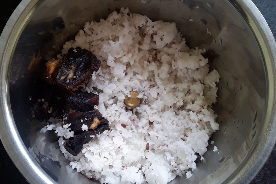 13. Take a fresh coconut and grate it - 2 to 3 tablespoons.
