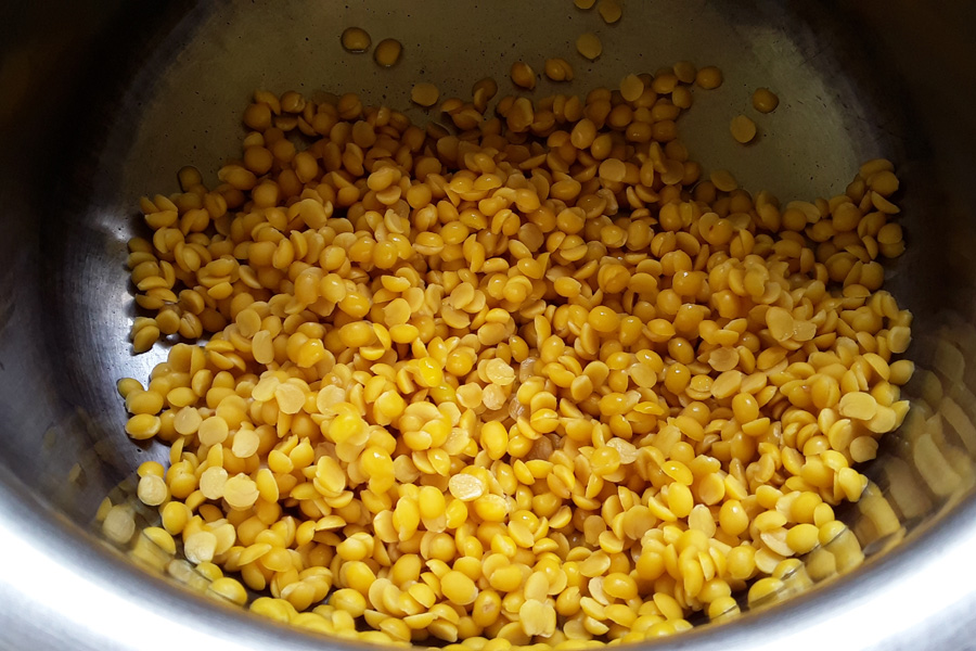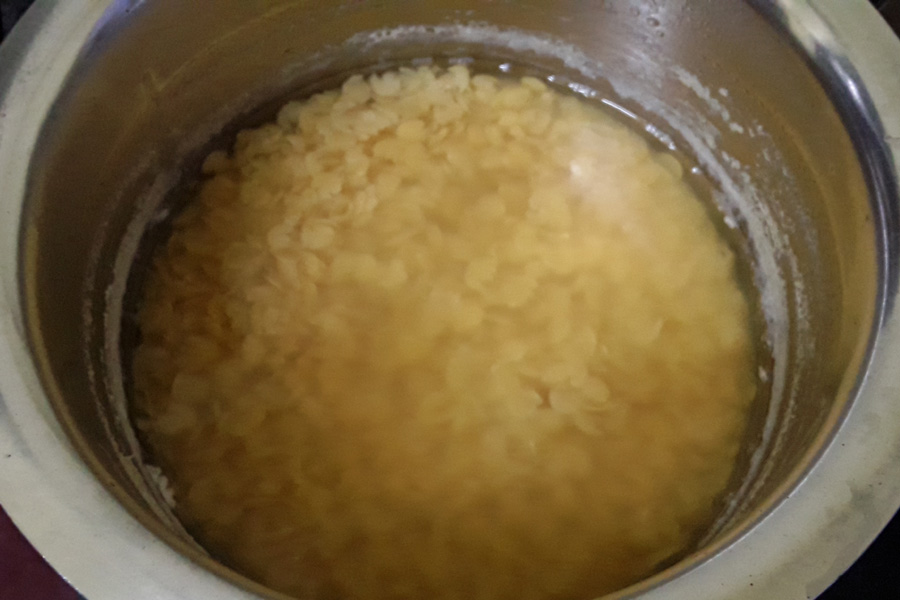 7. Add the lentils in a pan or vessel and add 3 cups water or as required.