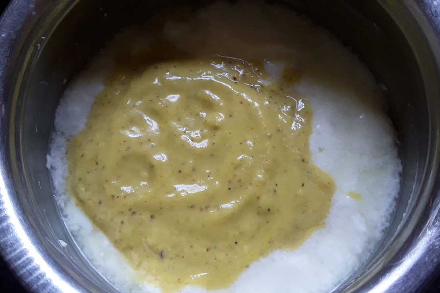 6. Add ground mix to the curd. Mix well.