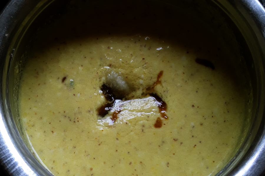 Sasime is one such sweet-sour curry made with star fruit. Sasime tastes better with ripe star fruits. But unripe star fruits can also be used to make sasime. I have used raw fruits in this recipe. If you prefer, you can cook them before grinding the mix. Sasime is mixed with plain rice to eat.