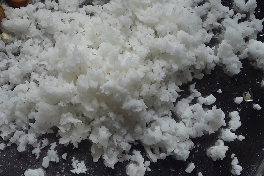 7. Add jaggery and salt.