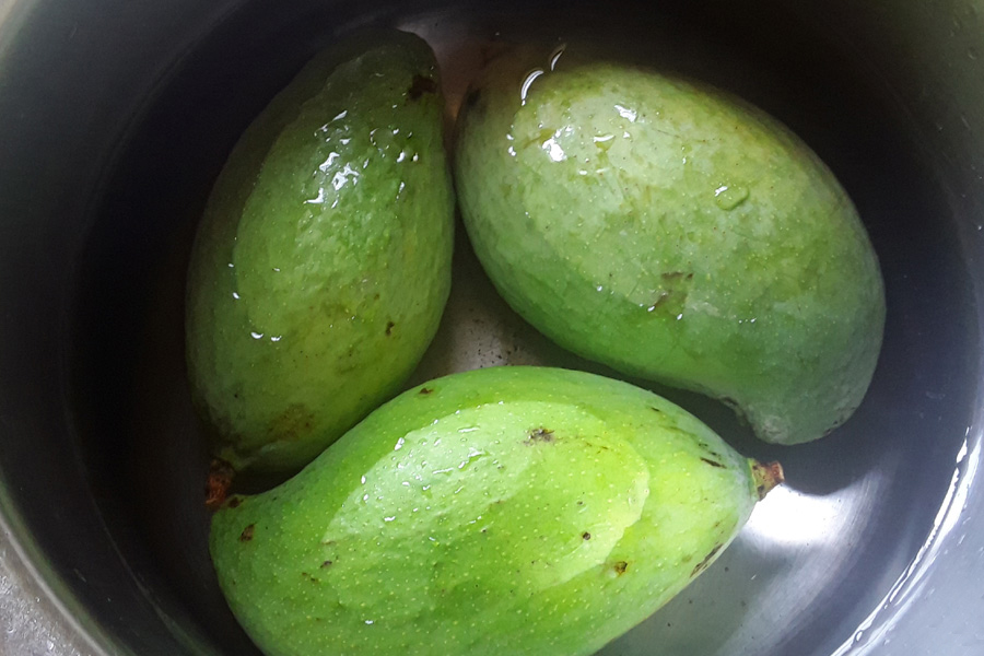 3 raw mangoes or 1 cup boiled raw mango pulp