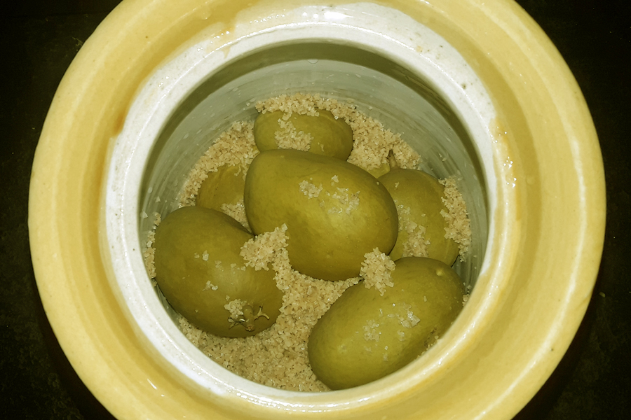 Raw (unripe) mangoes are cooked, cooled, and then preserved in salt. Kochgaayi can be used to make various dishes like marige bajji, gojju, and varieties of appehuli. Usually this is done in large quantities to preserve especially for rainy season.