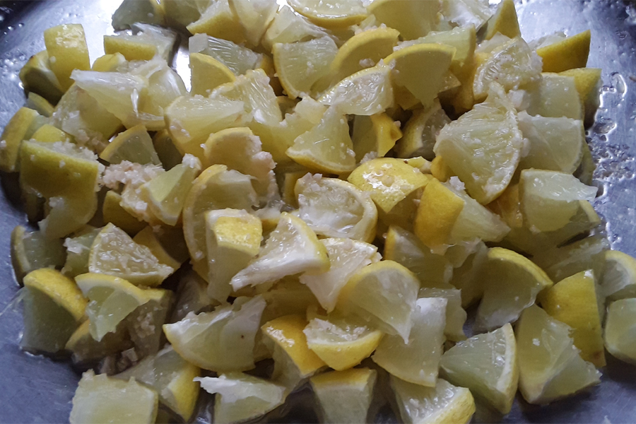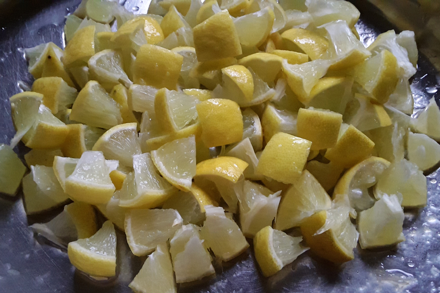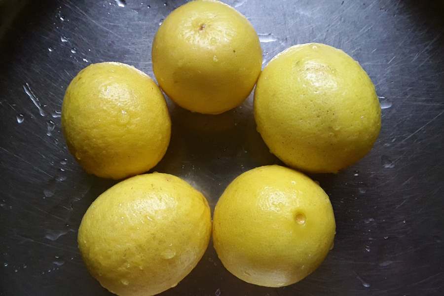 If lemons are store-bought, make sure to soak them in salt water for about 30 minutes.
