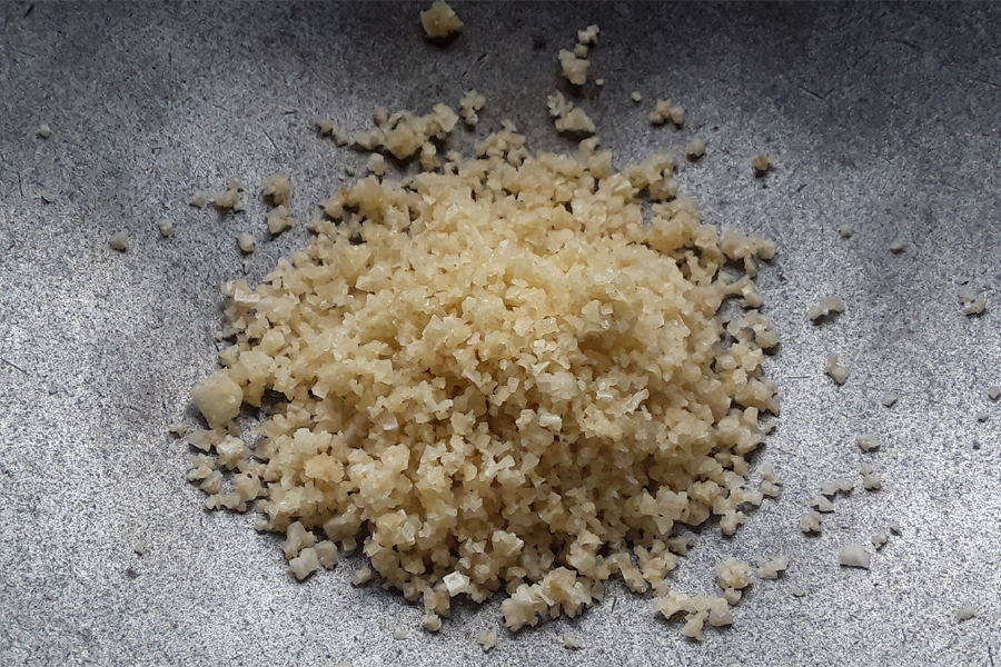 2. Dry roast crystal salt and remove the moisture completely. Let it cool.