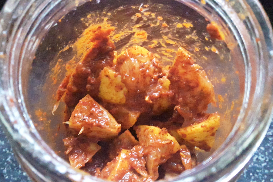 10. Transfer pickle to clean and dry mud / clay / glass jar. Store it in a cool, clean, and dry place. Let it rest for at least 8 to 10 days. Make sure to give a stir using a dry and clean spoon on every alternative day.