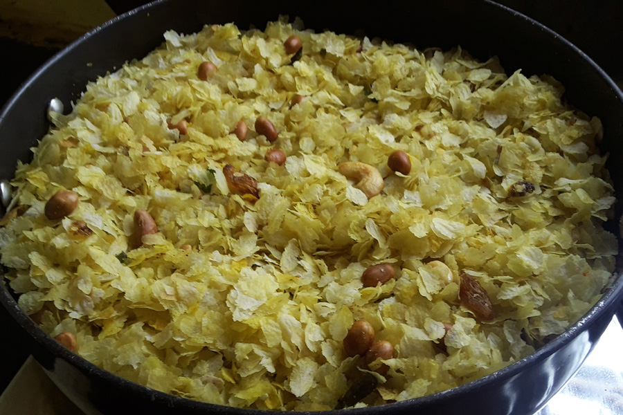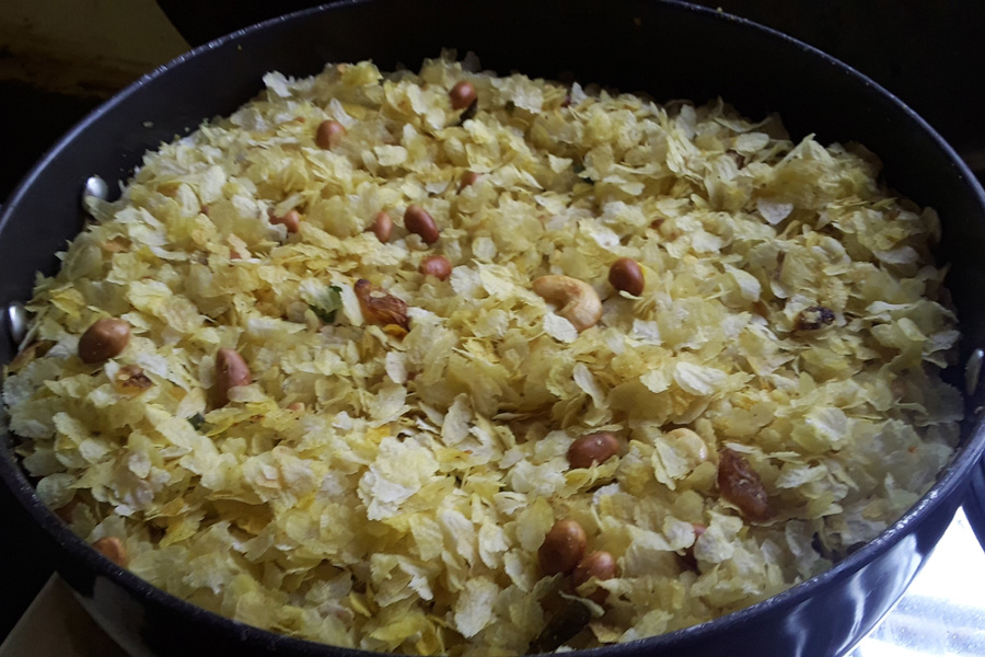 This wonderfully delicious Chudva is usually prepared in large quantity during social occasions as an evening tea time snack for the guests. Chudva is also a favorite snack during Aalemane (sugarcane harvest) and is enjoyed with sugarcane juice.