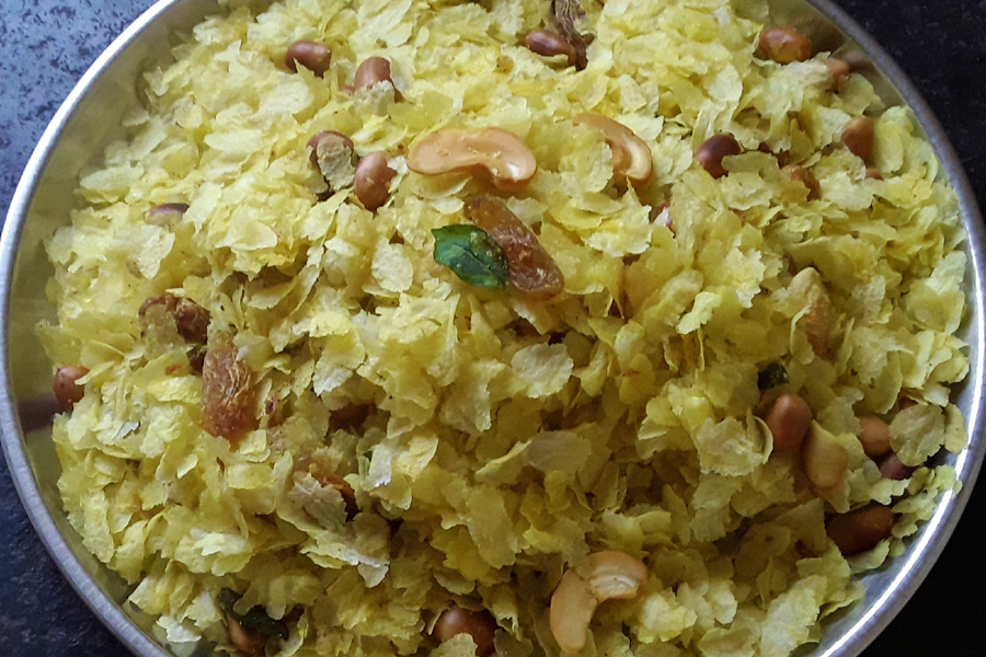 Then you can either transfer to another bowl or leave the Chudva in the same pan to cool down.