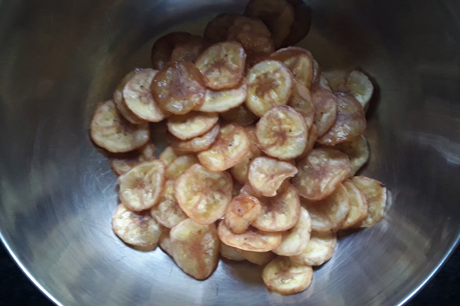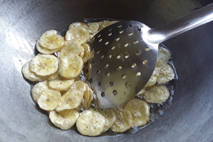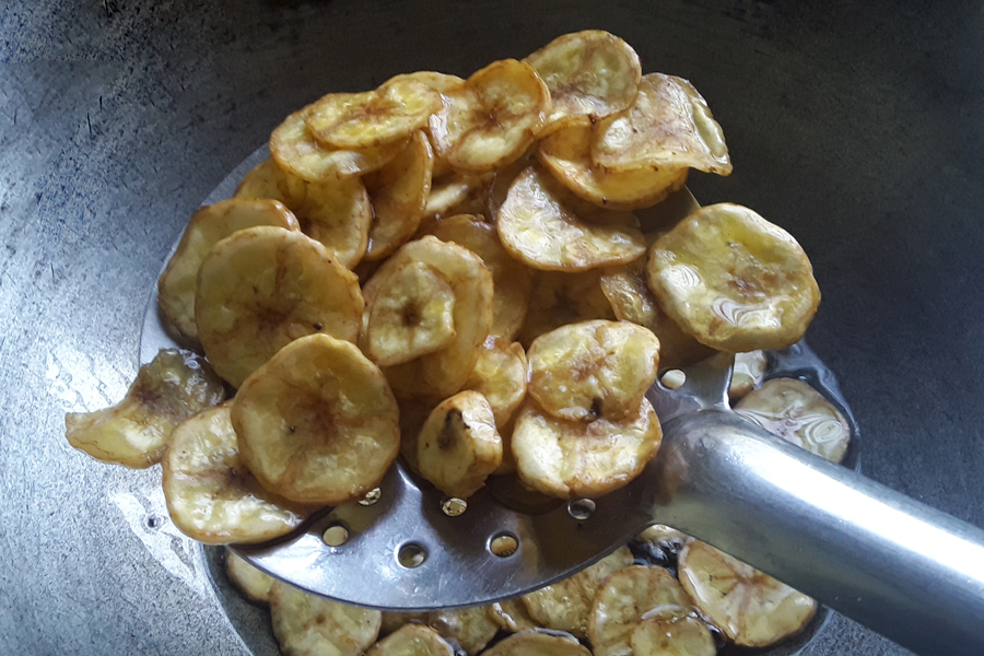 12. Remove the crispy banana chips.