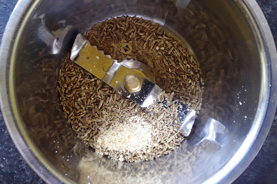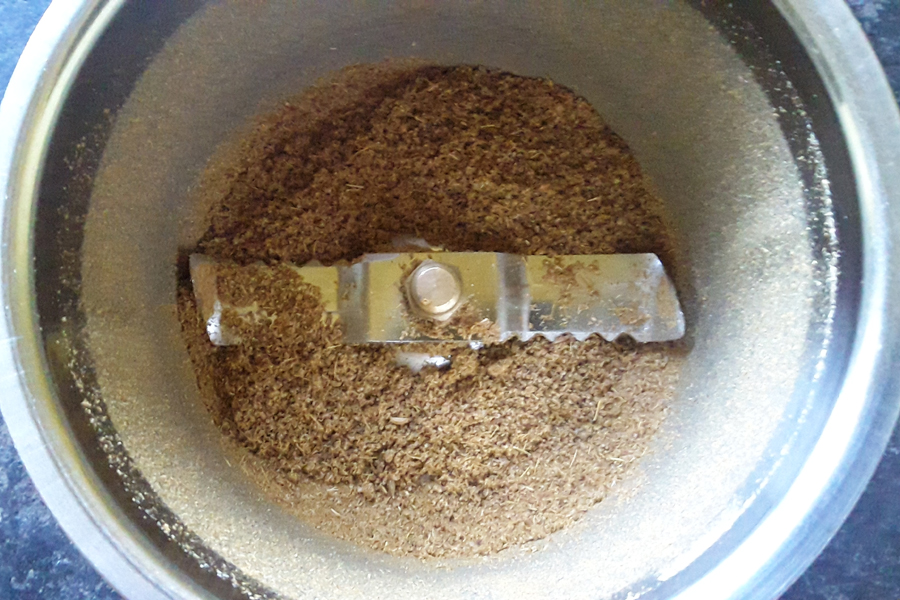 Note: Mortar and pestle can also be used to powder the spices.