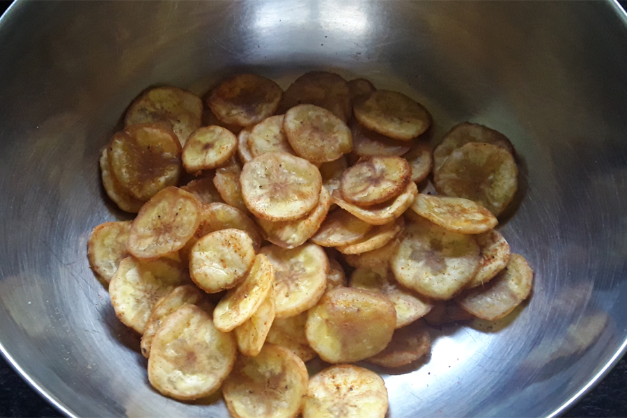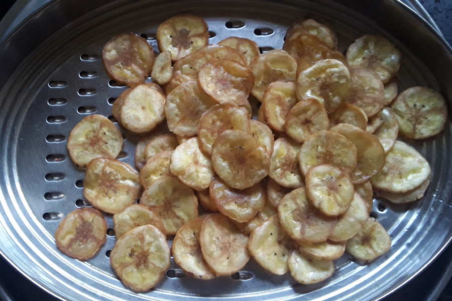 17. This way, fry all the banana slices in batches. Once the banana chips cool down to room temperature, store them in a clean, dry, and airtight container.