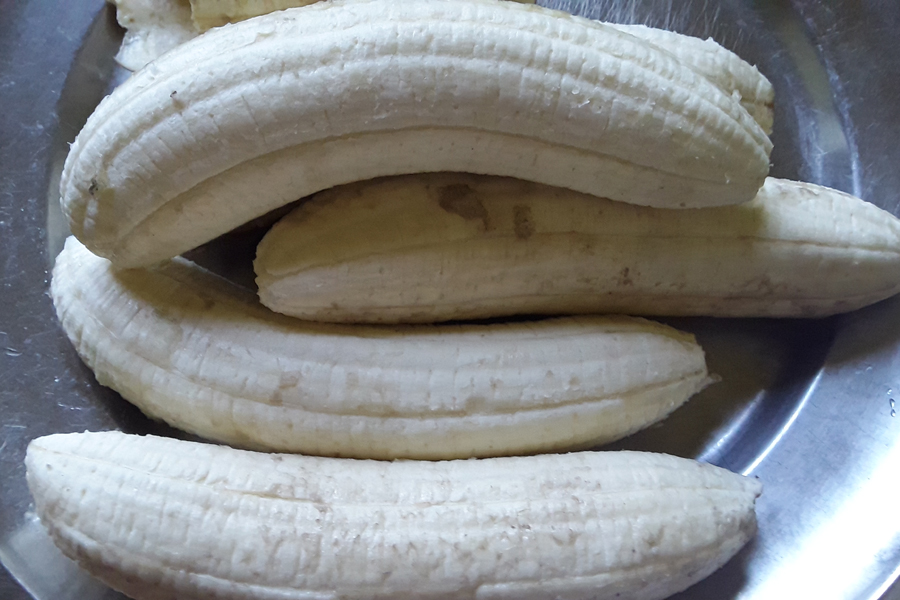 1. Wash the raw bananas thoroughly.