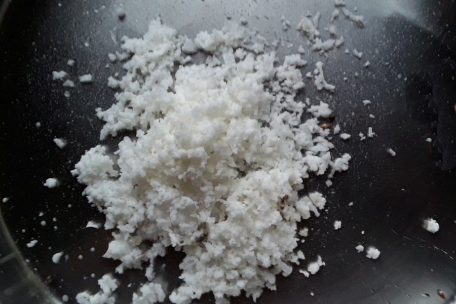1. Grate a coconut with a manual grater – 1 cup tightly packed.