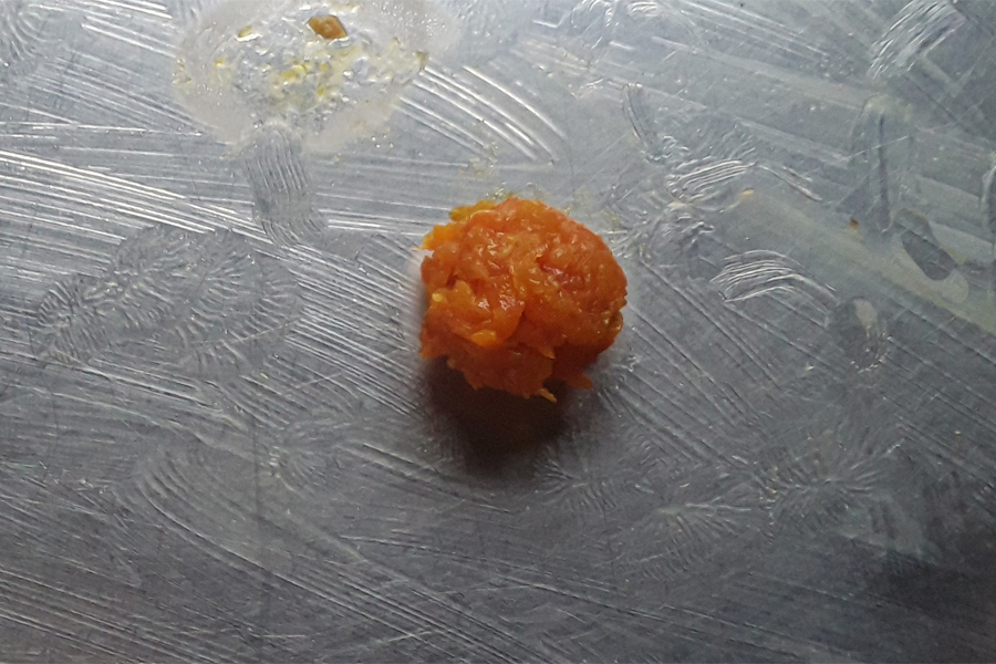 14. Take a small portion of the mixture, cool it, and then roll into a small ball. It should easily form a ball. If not, cook the mixture a few minutes more.