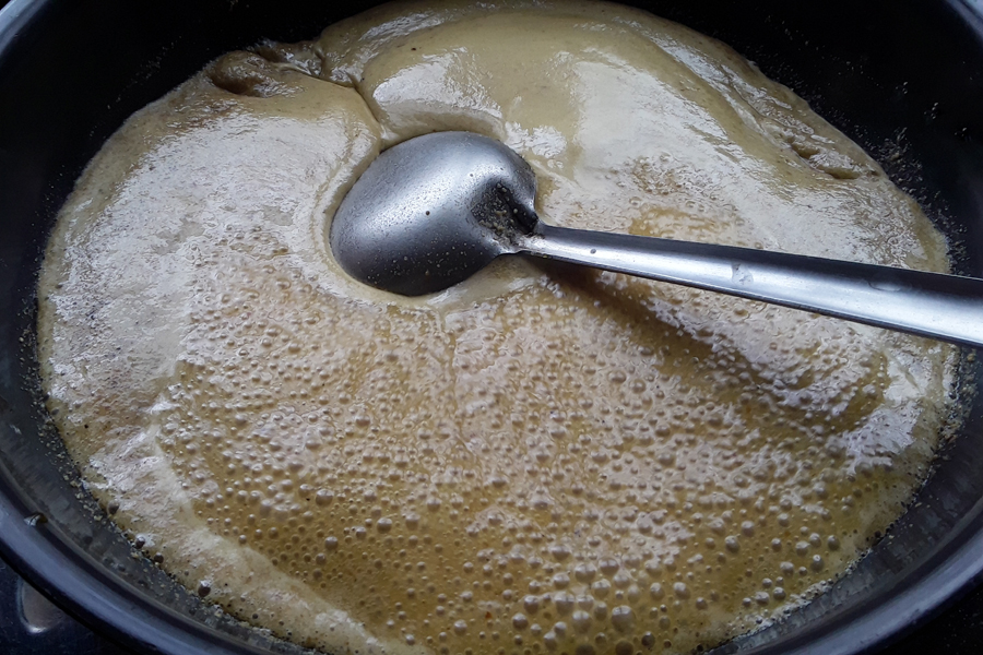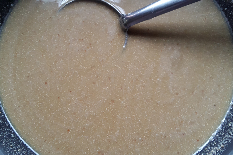 9. Transfer the ground mix to a pan.