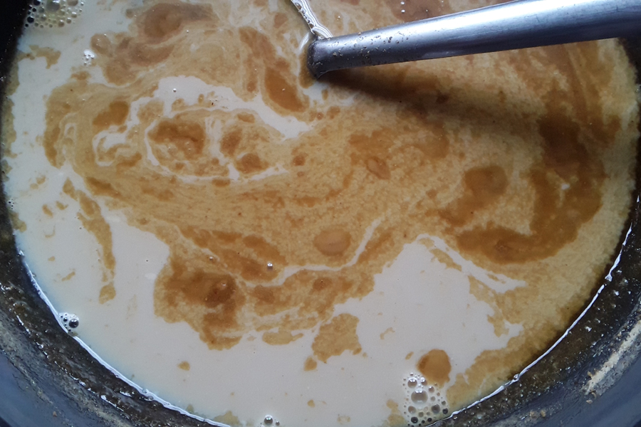 • Switch off and add milk. Mix well.