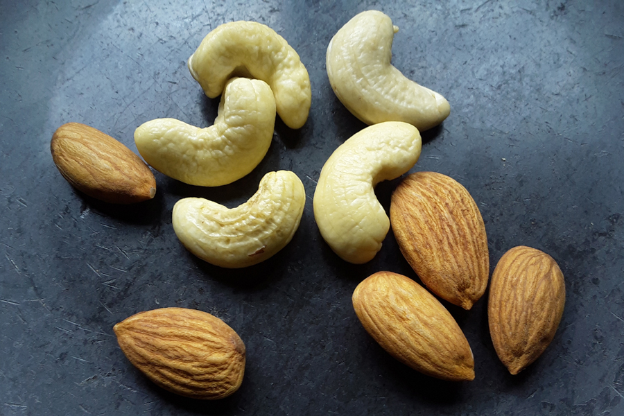 1. Rinse almonds and cashews. Dry fry / roast the nuts and keep aside.