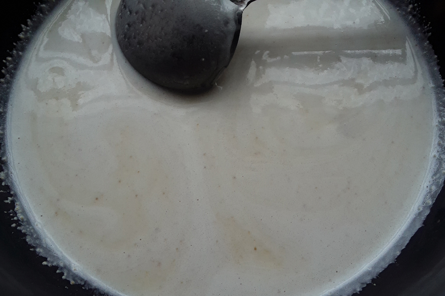 • For thicker version of the paayasa or kheer add less water when grinding, boil further until desired consistency, and add less milk. You may have to adjust jaggery accordingly.