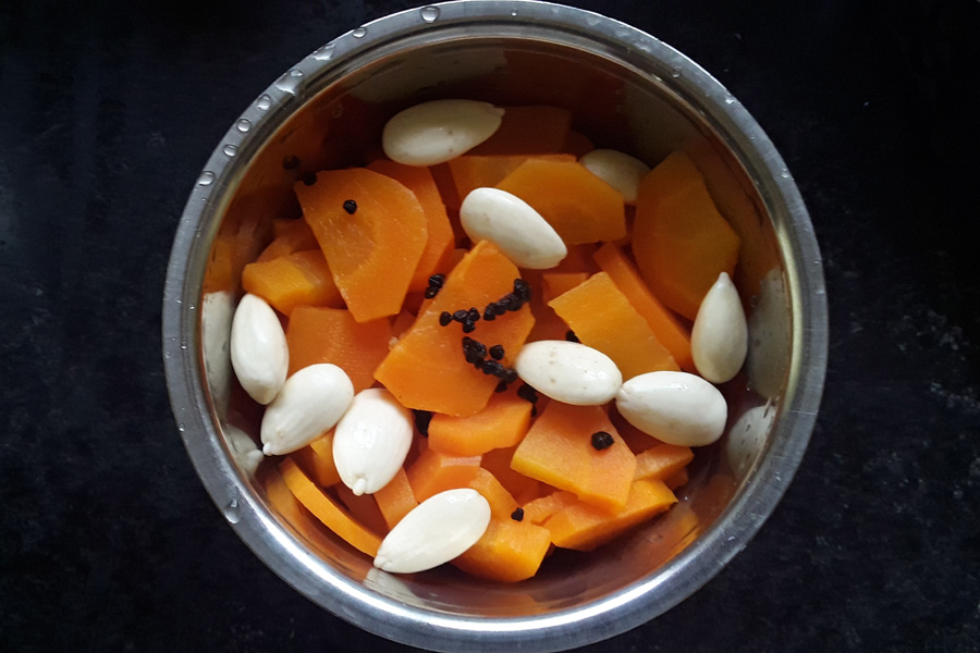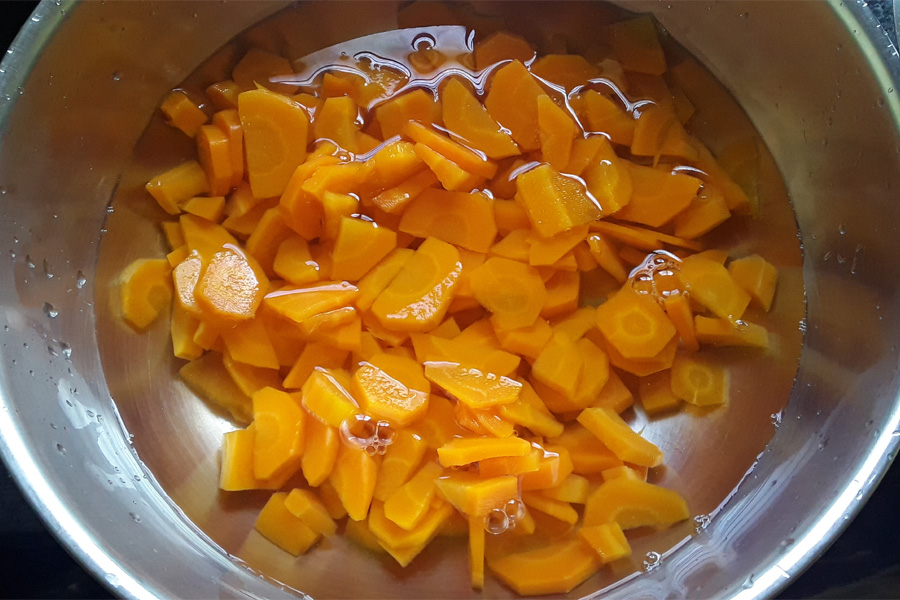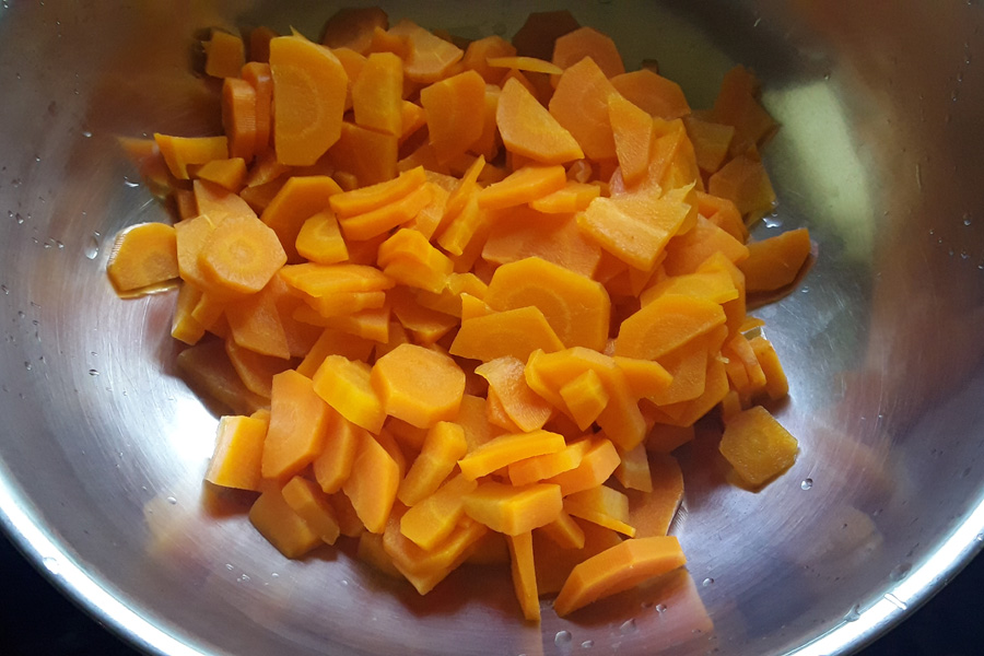 7. Cook the chopped carrots till they become soft and tender. Let it cool.