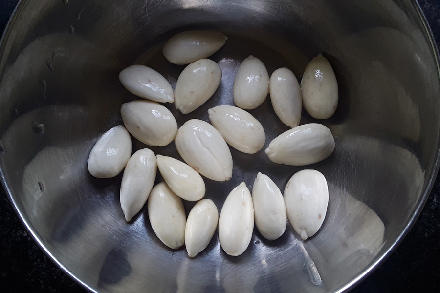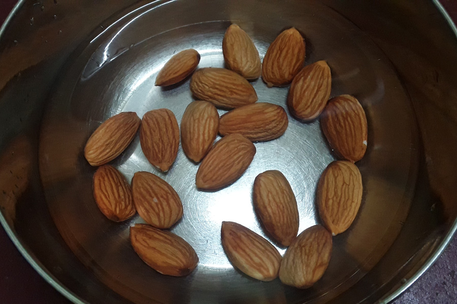1. Soak 15 to 20 almonds (badami or badam) in water overnight.