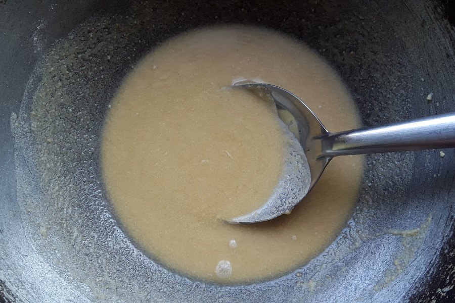 12. Mix well and boil until it thickens. Stir frequently and make sure that the flour is not sticking at the bottom of the pan.